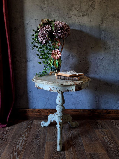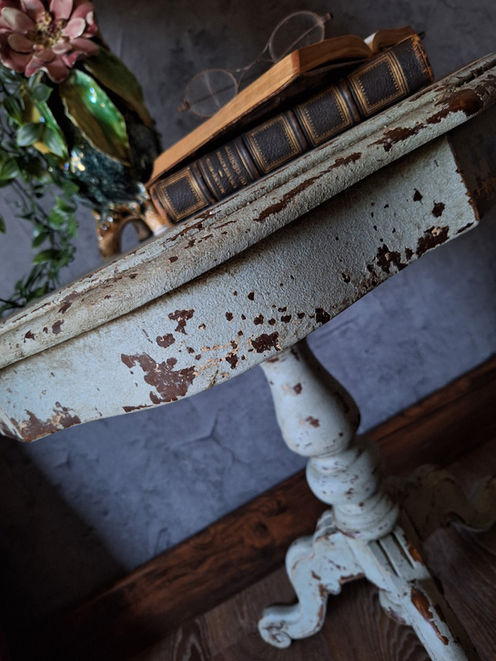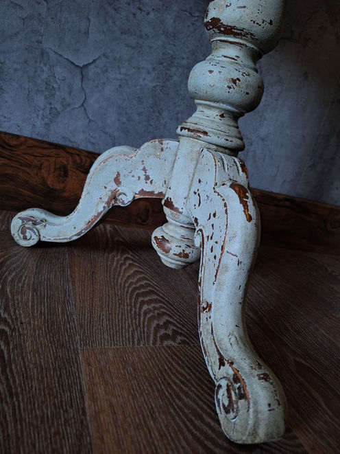 Très beau guéridon Louis Philippe en acajou peint en bleu-gris vieilli et patiné à l’ancienne.