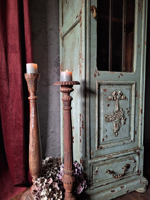 Imposante par sa hauteur et délicate à la fois, elle sublimera n’importe quelle pièce avec le magnifique ruban noué et le panier de fleurs qui ornent le bas de la porte surmonté d’une superbe vitre biseautée sertie de plomb. Elle offre de beaux espaces de rangement avec son tiroir inférieur et ses trois planches intérieures où linge de maison, vaisselle ou même livres trouveront une place de choix.