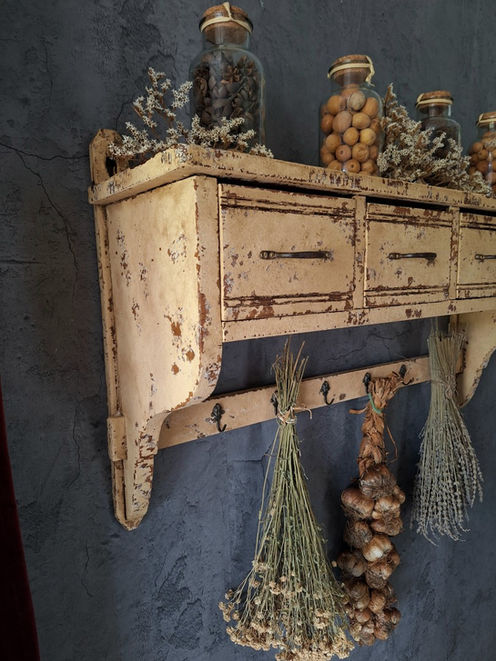 Véritable bijou pour les amoureux de décoration authentique, cette superbe étagère murale évoque l’âme des maisons de campagne et le raffinement des intérieurs vintage où chaque détail a été pensé pour allier beauté et fonction.