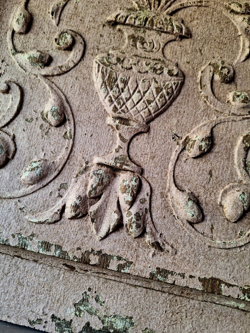 Jadis élément décoratif de boiseries ou de meubles Haute époque, ce magnifique panneau en chêne richement sculpté de style Renaissance a été patiné à l’ancienne et peint dans une teinte rose grisé poudré à rehauts blancs pour apporter à votre intérieur une touche unique et élégante qui rappelle les demeures d’autrefois.