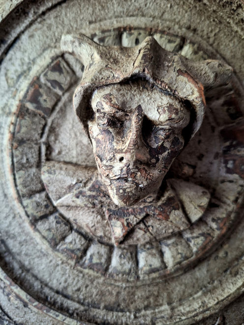 Jadis élément décoratif de boiseries ou de meubles Haute époque, ce magnifique panneau en chêne richement sculpté de style Renaissance a été patiné à l’ancienne et peint dans une teinte beige foncé à rehauts verts pour apporter à votre intérieur une touche unique et élégante qui rappelle les demeures d’autrefois.